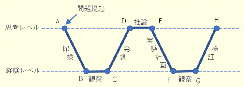 順序が後先するが、Aは重要で、特にグループで問題にあたるときには、決定的に重要になる。研究者であれば、リサーチクエスチョンの設定と言ってもよい。ここでの問いがあいまいであったり、参加者の考えが不一致であったりすると、大きな成果は望めない。