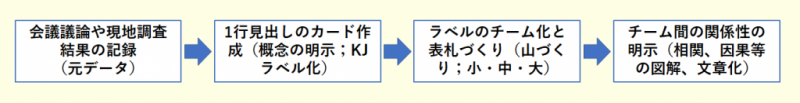 役割分担(時にそれは会社内や研究室内の権力構造である)があっても、現場データを収集し、そこから取組課題を明確にする段階で、KJ法の方法と思想は極めて魅力的である。 ☝目次へ